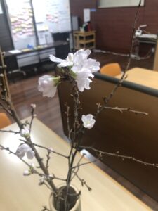 昨日の大雪にかわり施設内では桜が咲き花見が!(^^)!