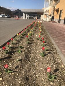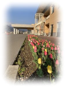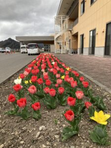 先週のチューリップも満開です。桜も咲き始め来週一杯は花見大丈夫ですね(^^♪ 利用者も来週には花見見物に移動予定です。今年は例年より2週間程早い気がします。