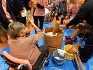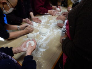 12月29日 28日10時過ぎ餅つきを開催、その後餅を丸めたりした後食事をして楽しみました。