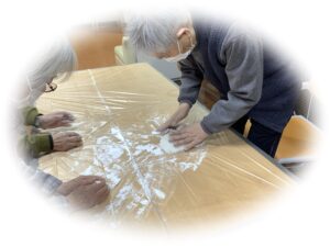 28日10時よりお正月の餅つきを施設内で行います参加予定者。(当日優雅施設内利用者)